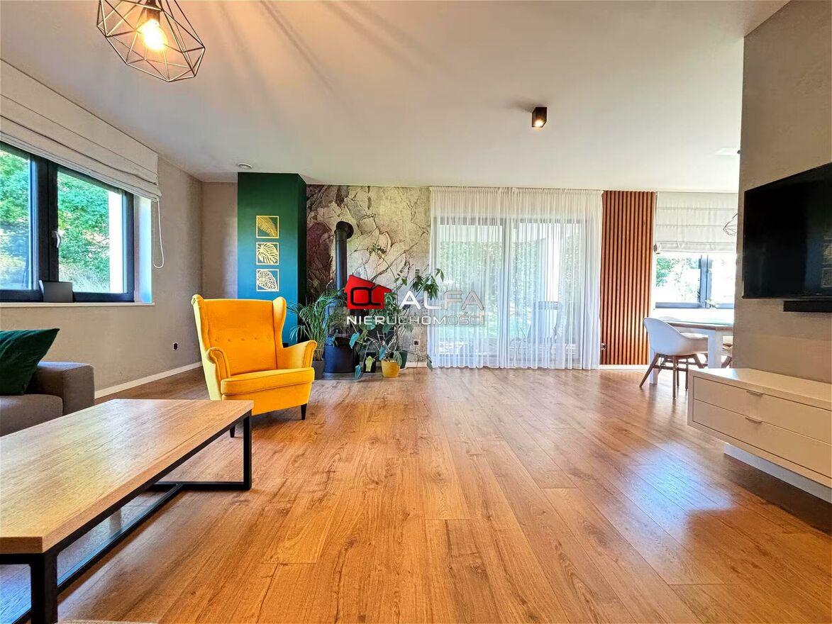 W całym domu wykonane jest ogrzewanie podłogowe. Ogrzewanie w domu stanowi pompa ciepła, dodatkowo w salonie zamontowany piecyk, który dodaje klimatu i ciepła w chłodniejsze dni. Nieruchomość wyposażona jest również w panele fotowoltaiczne oraz rekuperację - dom w systemie energooszczędnym.